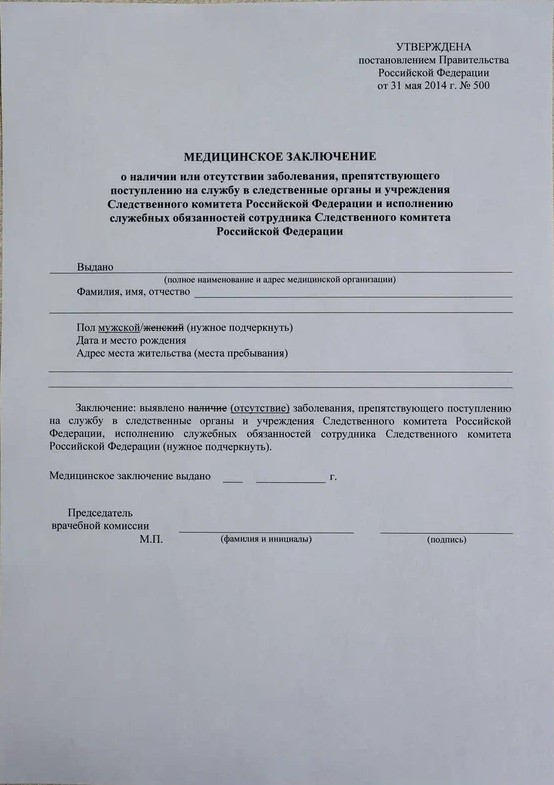 Многих граждан интересует вопрос, платная ли эта справка. Для претендентов на работу медицинская справка формы 500 в Следственный комитет платная.