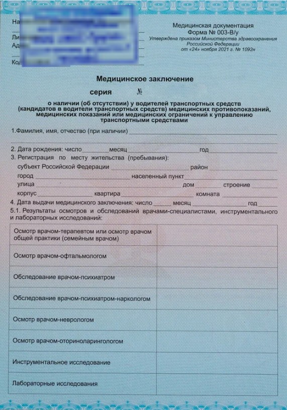 Актуальная форма справки для ГИБДД, действующая на данный момент, утверждена 01.07.2016 года. Эта медсправка для водительских прав по форме 003 Ву имеет бланк с высокой степенью защиты. Для получения справки в нашей клинике требуются справки из психоневрологического и наркологического диспансеров по месту пребывания ее предъявителя (прописки или жительства). Этот момент регламентируется законом N 437-ФЗ от 28.12.2013 — обследование должно проходить только в специализированных медицинских учреждениях).